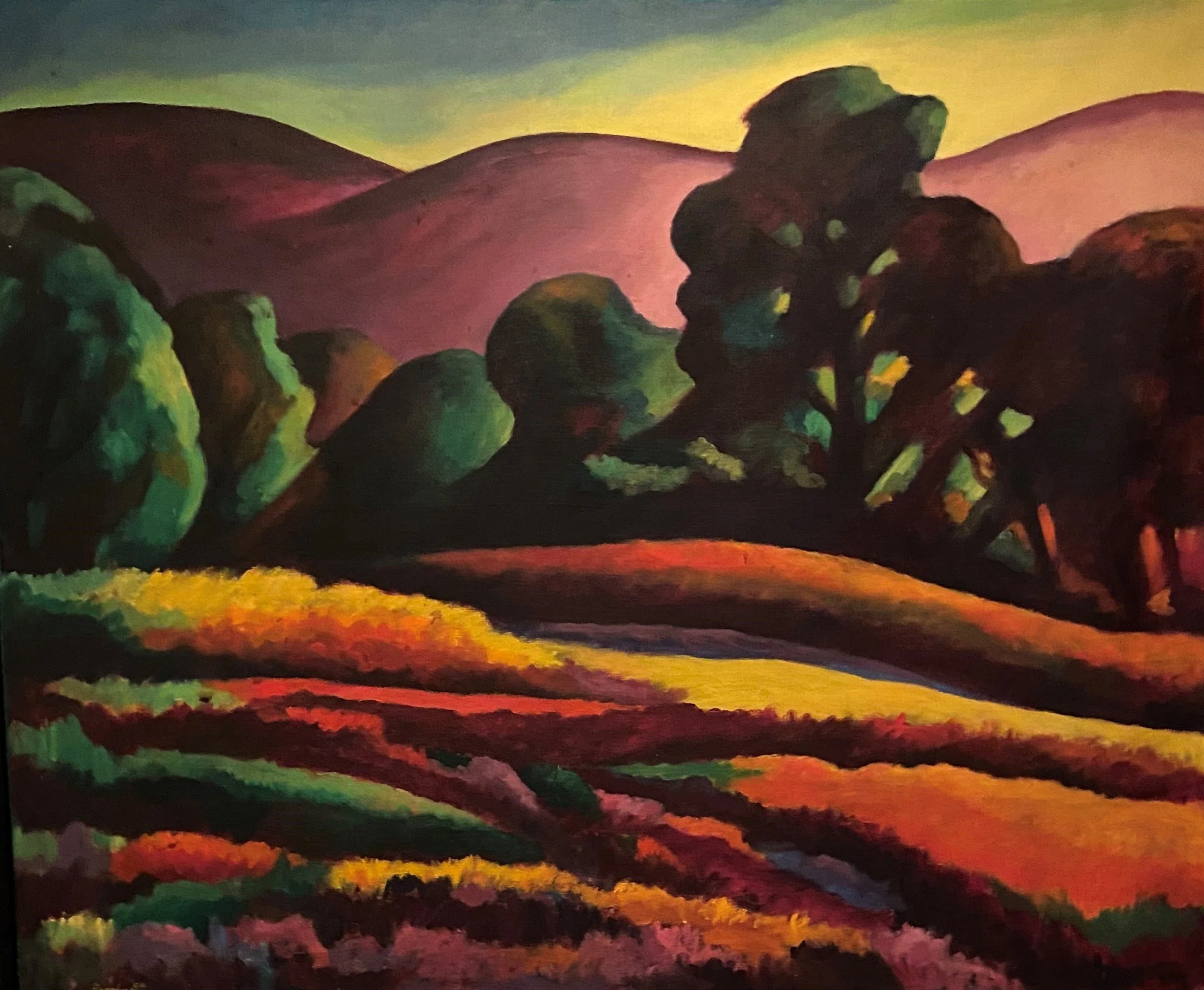 Stephen’s work often reflected his broad interests whether it was a house he worked on as a builder, a vintage automobile, or portraits of his boys. Later in his career, he turned his attention toward abstraction, which varied from hard-edged geometry to intensely-colored and expressionistic compositions. His work has been exhibited at the Columbia-Greene Community College, Institute of Man and Science in Rensselaerville, New York along with numerous group shows, including the Carrie Haddad Gallery in Hudson, New York in 2013 and 2015.